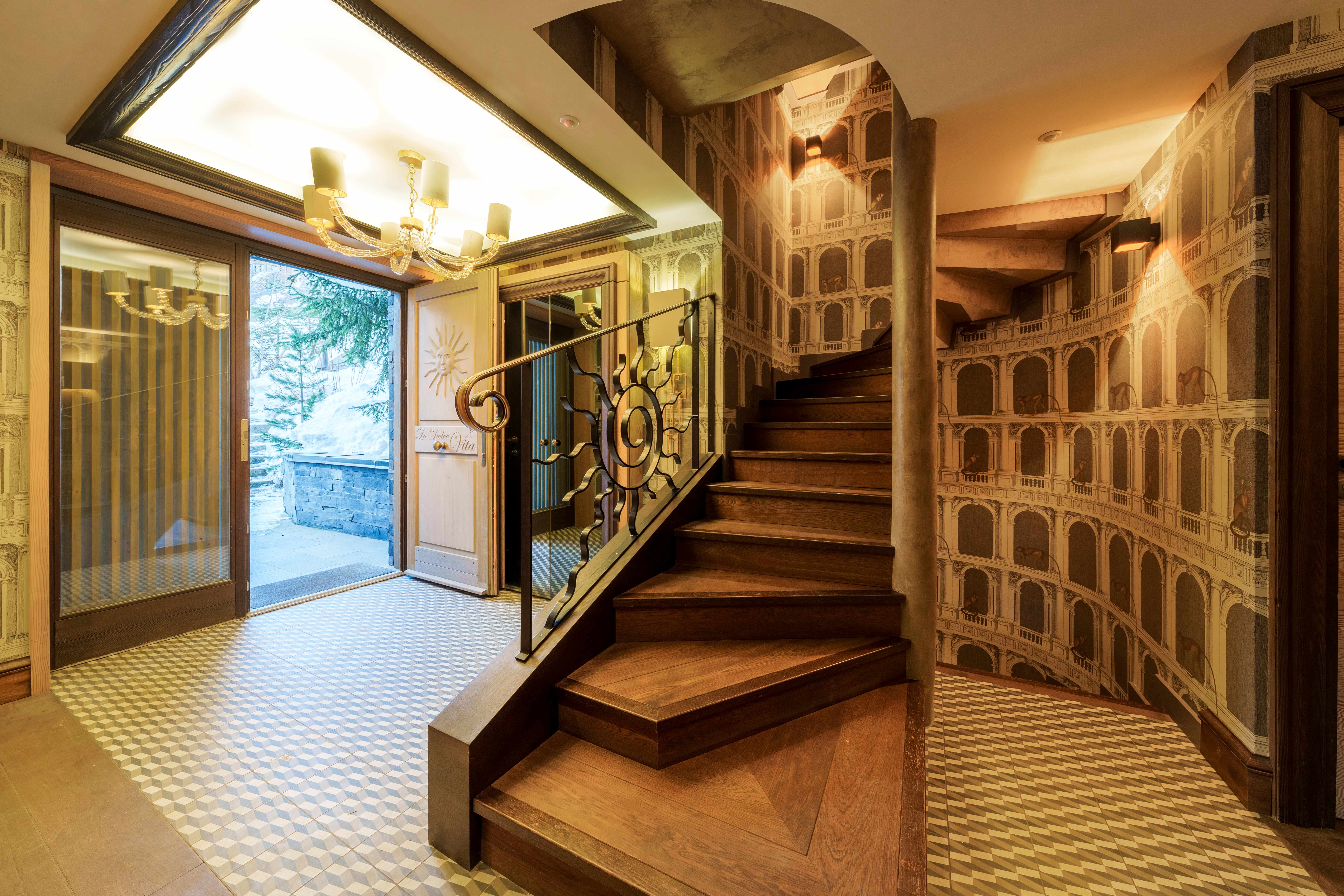 This level features a cinema for evening entertainment, a ski room for winter sports enthusiasts, a garage for your vehicle, and a laundry room for enhanced comfort. All floors are readily accessible via an elevator, ensuring convenient and seamless access.
